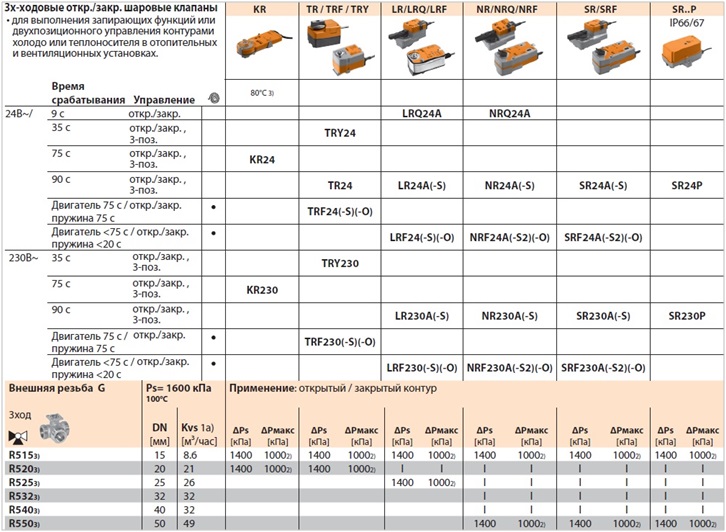 Позиционный (откр. /закр.) шаровый клапан управляется электроприводами серий TR…, LR…A, NR…A или SR…А (или электроприводами со встроенной возвратной пружиной LF/NRF…A/SRF…A). Электропривод управляется стандартным внешним сигналом.