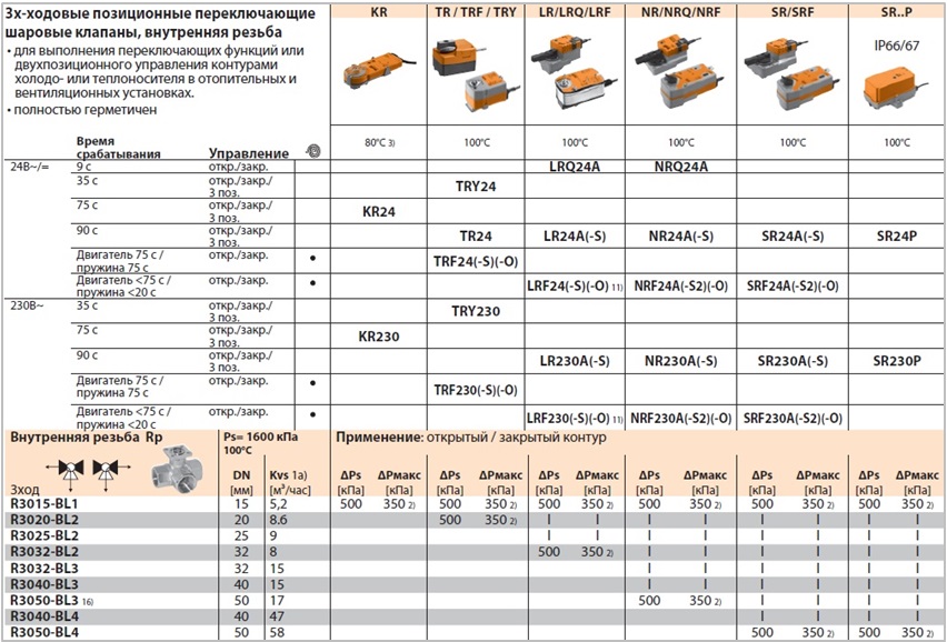 Позиционный (откр. /закр.) шаровый клапан управляется электроприводами серий TR…, LR…A, NR…A или SR…А (или электроприводами со встроенной возвратной пружиной LF/NRF…A/SRF…A). Электропривод управляется стандартным внешним сигналом.